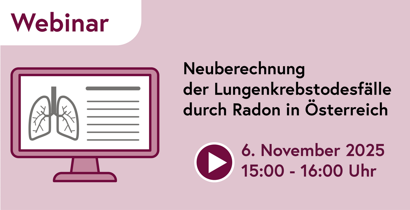 Im fünften Webinar stand das Thema Radon und Lungenkrebs im Mittelpunkt. Radon ist nach dem Rauchen die zweithäufigste Ursache für Lungenkrebs in Österreich. Rund 20 Jahre nach der ersten Schätzung wurde nun eine Neuberechnung der durch Radon verursachten Lungenkrebstodesfälle durchgeführt – basierend auf aktuellen Daten zur Radonbelastung und Demographie. Zusätzlich wurden verschiedene Szenarien betrachtet, wie sich eine Verringerung der Radonbelastung in Haushalten auf die Zahl der Lungenkrebstodesfälle auswirken könnte.